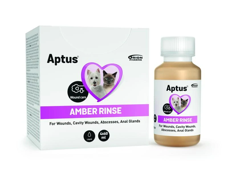 Na očistenie a oplach povrchových poranení, rán a abscesov použite neriedený Aptus Amber Rinse. Na ošetrenie veľkých plôch pokožky môžete Aptus Amber Rinse riediť v pomere 1:1.