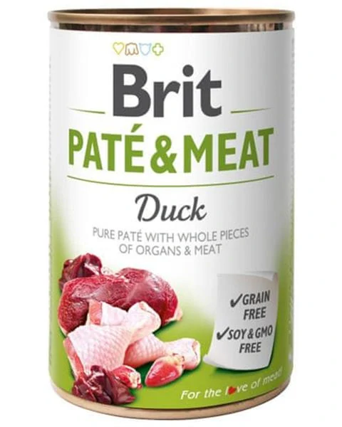 Konzerva Brit predstavuje kompletné krmivo pre všetky veľkosti a vekové kategórie psov. Obsahuje kúsky masa s celými kúskami vnútornosti v lahodnom päte. Vysoký podiel kvalitného masa a jeho šetrné spracovanie je zárukou excelentnej chuti aj vône. Brit Paté & Meat je ideálnym doplnkom aj ku granulám. Pomáha zlepšiť príjem krmiva a doplniť tekutiny.
