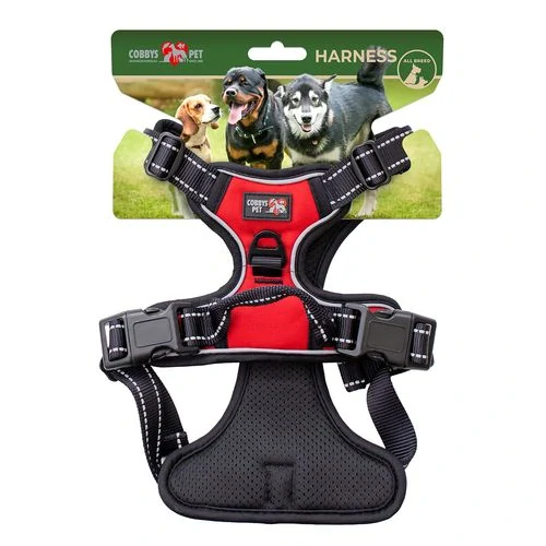 Postroj COBBYS PET v červenej farbe je nielen funkčný, ale aj štýlový doplnok, ktorý vášho miláčika na prechádzkach neprehliadnuteľným!
