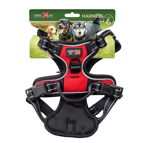 Postroj COBBYS PET v červenej farbe je nielen funkčný, ale aj štýlový doplnok, ktorý vášho miláčika na prechádzkach neprehliadnuteľným!