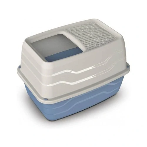 Uzavretá, priestranná toaleta pre mačky s horným prielezom z kvalitného odolného plastu.