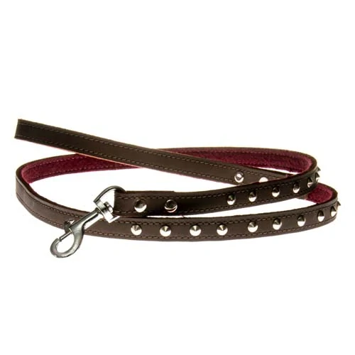 COBBYS PET Vodidlo z pravej kože hnedé, podšité, zdobené striebornými nitmi 15mm/120cm
