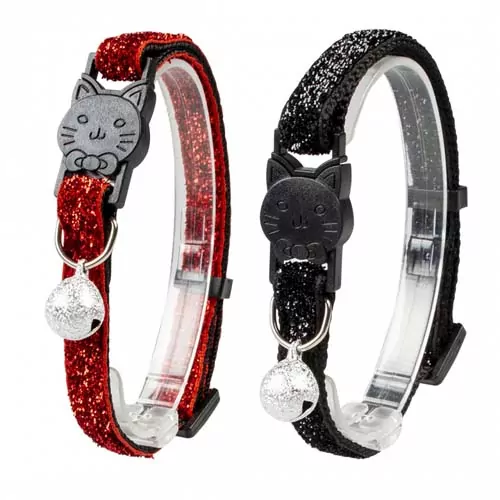 DUVO+ Nylonový obojok GLITTER pre mačky 22-30cm/10mm čierny/červený 1ks