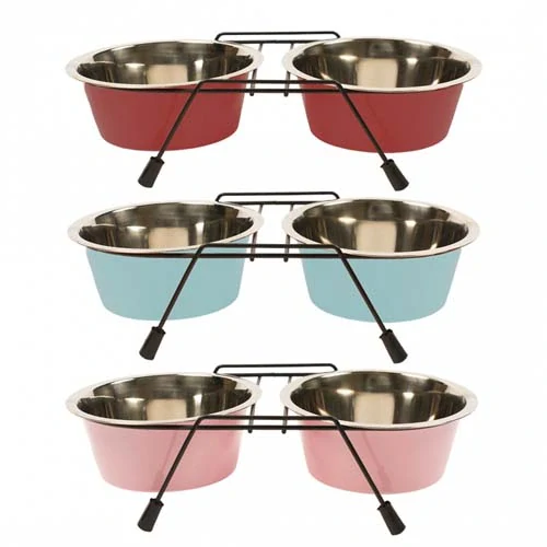 Sada misiek v stojane na jedlo alebo pitie je ideálnou voľbou na kŕmenie pre každého majiteľa psa. Misky majú farebnú vrstvu, vďaka ktorej sa hodia do každého interiéru. Stojan je opatrená protišmykovou úpravou. Túto nerezovú súpravu je možné čistiť ručne.