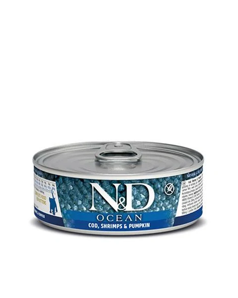 Farmina N&D cat OCEAN tuna, codfish, shrimp & pumpkin kitten konzerva 70 g