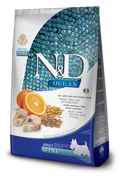 Farmina N&D dog OCEAN (AG) adult mini, codfish, spelt, oats & orange 2,5 kg