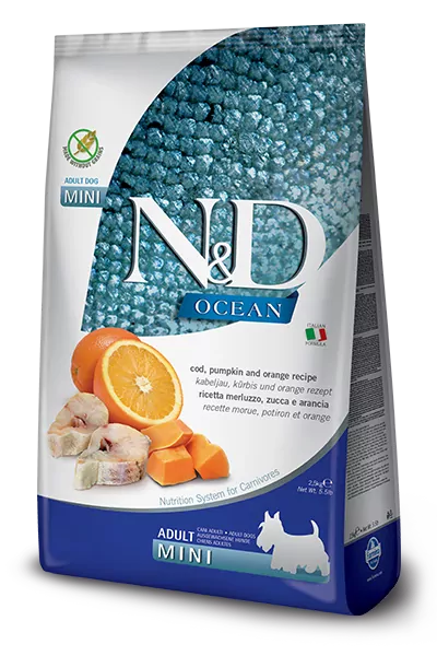 Farmina N&D dog OCEAN PUMPKIN (GF) adult mini, codfish & orange 2,5 kg