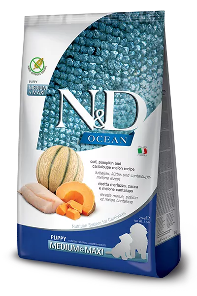 - Farmina N&D dog OCEAN PUMPKIN (GF) puppy medium & maxi, cod & cantaloupe melon 2,5 kg