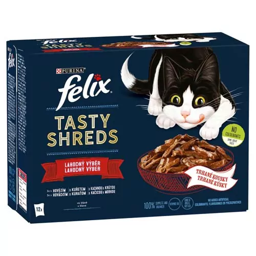 FELIX TASTY SHREDS Multipack 12x80g hovädzie/ kura/ kačica/ morka v šťave