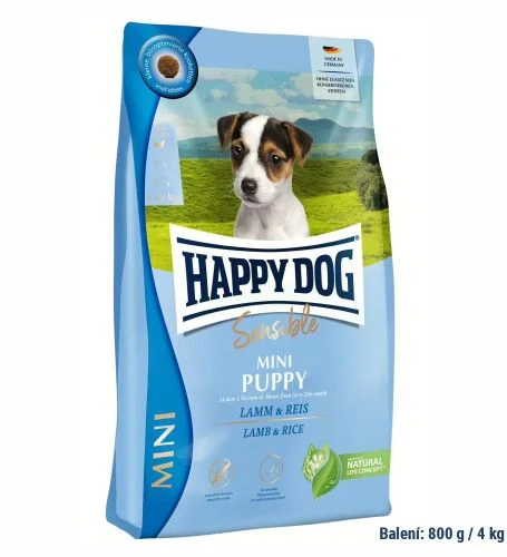 Pre podporu harmonického rastu šteniat a mladých psov malých plemien je dôležitá vyvážená potrava, najmä v prvých mesiacoch života. Zloženie šteňacieho krmiva by malo mať optimálny pomer tukov a bielkovín. Naše krmivo Happy Dog Sensible Mini Puppy ponúka vášmu pejskovi všetky doplnky výživy v dostatkom množstve. Tomu vášmu pejskovi poskytnete všetko, čo v prvých mesiacoch života potrebujete.