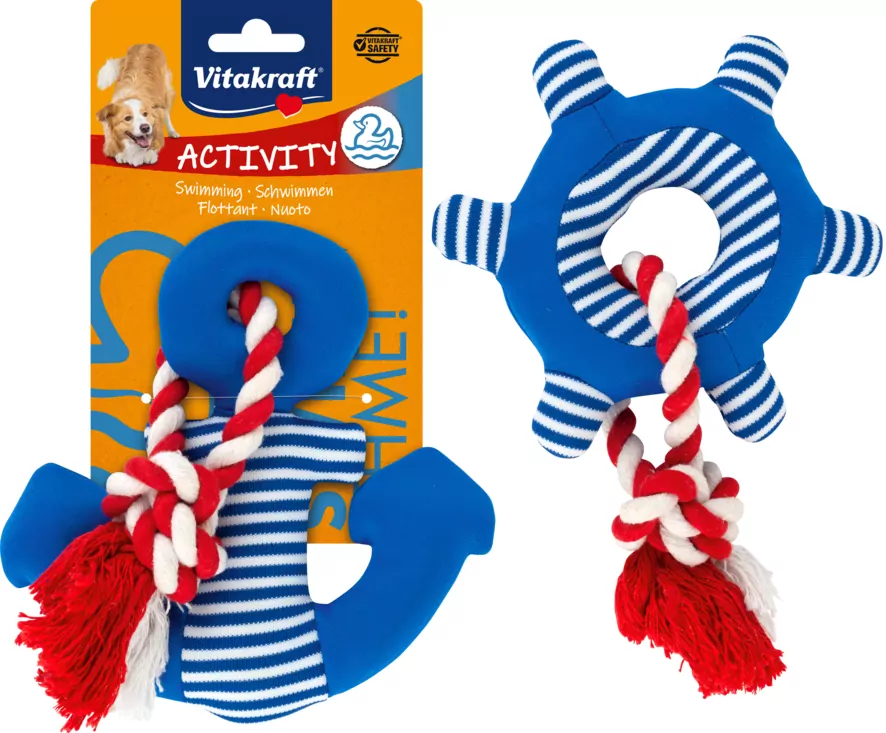 Plávajúca hračka pre psov vyrobená z odolnej textílie v dvoch prevedeniach - kormidlo a kotva. Veľkosťou je ideálna pre malých až stredných psov. Ak radi chodíte so svojím štvornohým spoločníkom k moru alebo na kúpalisko, táto hráčka vám zaistí veľa zábavy.