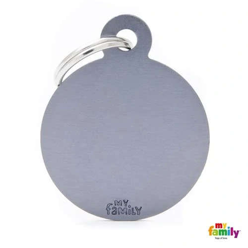 MF BIG ROUND ALUMINUM GREY 3,93x3,17 cm gravírovateľný prívesok