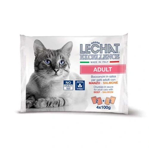 MONGE LECHAT EXCELLENCE ADULT hovädzie/losos multi pack 4x100g kapsička3,14 €/ ks