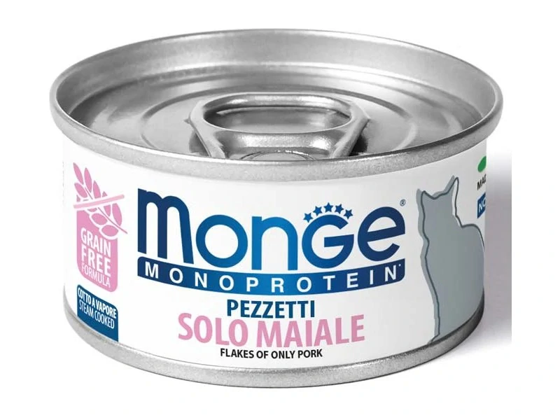 MONGE Monoprotein Flakes Only pork 80g konzerva pre dospelé mačky s bravčovým mäsom