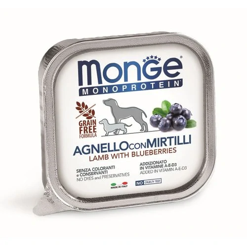 MONGE Monoprotein Fruits Adult Lamb 150g paštéta 100% jahňacina s čučoriedkami pre dospelých psov1,50 €/ ks