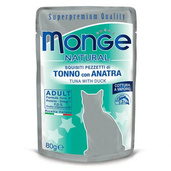 MONGE NATURAL 80g kapsička pre dospelé mačky tuniak s kačicou v želé1,43 €/ ks