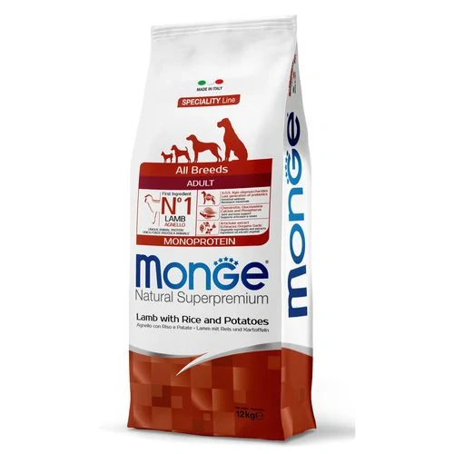 MONGE Natural Superpremium All Breeds Adult 12kg monoproteínové krmivo jahňa/ryža/zemiaky pre dospelé psy všetkých plemien