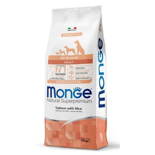 MONGE Natural Superpremium All Breeds Adult 12kg monoproteínové krmivo losos/ryža pre dospelé psy všetkých plemien57,59 €/ ks