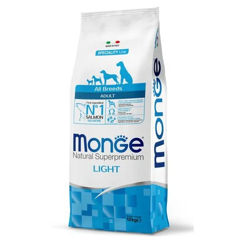 MONGE Natural Superpremium All Breeds Light 12kg diétne krmivo losos/ryža pre dospelé psy všetkých plemien57,59 €/ ks