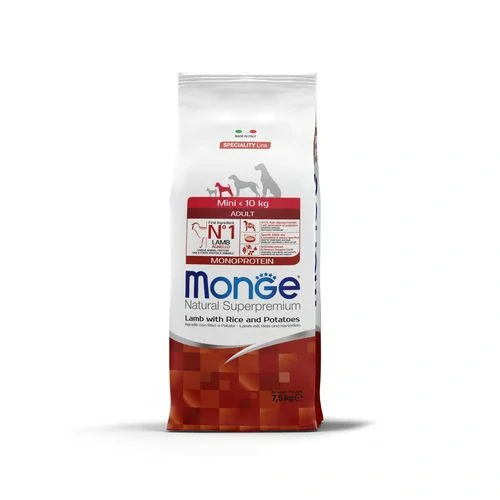 MONGE Natural Superpremium Mini Adult 7,5kg monoproteínové krmivo jahňa/ryža/zemiaky pre dospelých psov malých plemien
