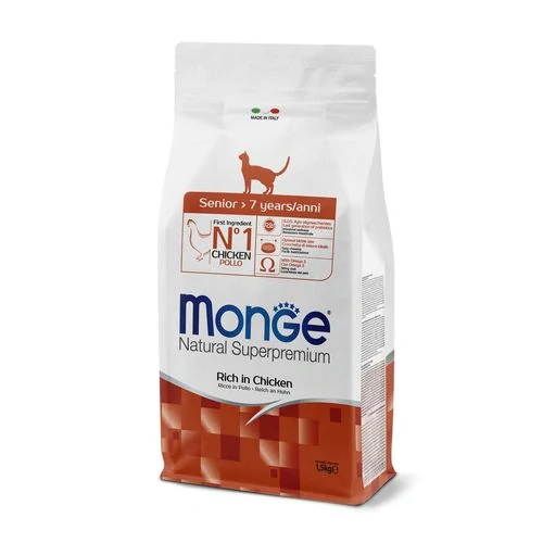 MONGE Natural Superpremium Senior 1,5kg suché krmivo s kuracím pre seniorské mačky
