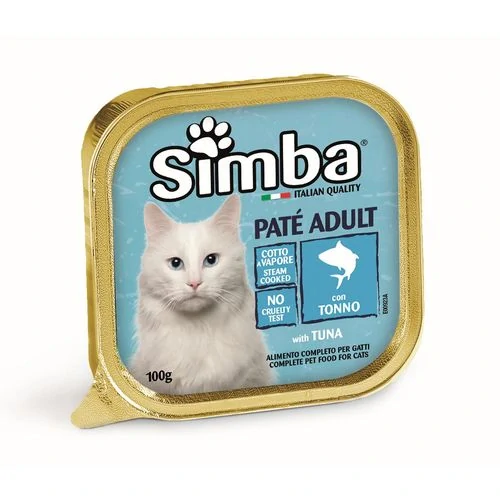 SIMBA CAT PATÉ WITH TUNA je kompletné krmivo pre dospelé mačky. Paštéta formulovaná s kvalitnými prísadami, ako je tuniak, zdroj bielkovín a minerálov, varená v pare na zvýraznenie ich prirodzenej chuti a stimuláciu denného apetítu vášho domáceho maznáčika. Receptúra bola vyvinutá so špecifickou kombináciou vitamínov A-D3-E, aby spĺňala nutričné požiadavky na denné potreby vášho domáceho maznáčika. Bez pridaných farbív a konzervačných látok.