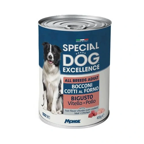 MONGE SPECIAL DOG EXCELLENCE pečené kúsky v šťave s teľacím a kuracím mäsom pre psov 400g1,14 €/ ks