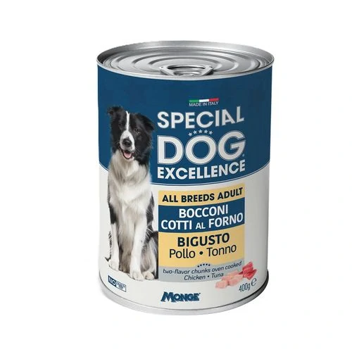MONGE SPECIAL DOG EXCELLENCE pečené kúsky v šťave s tuniakom a kuracím mäsom pre psov 400g1,14 €/ ks