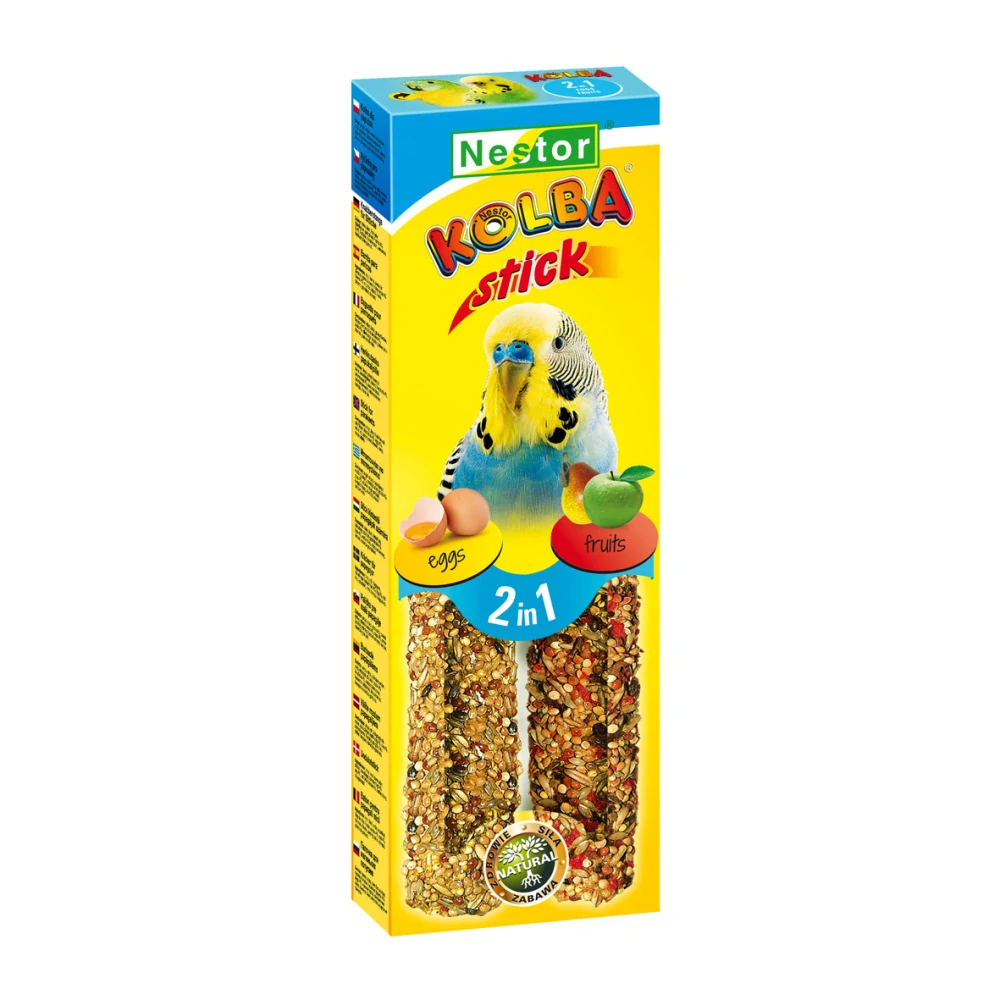 NESTOR Tyčinka pre andulky s vajíčkom a ovocím 2ks 85g dve rôzne príchute v jednom balení2,99 €/ ks