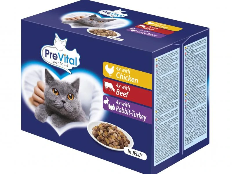 PreVital kapsička s kuracím, hovädzím mäsom a morkou s králikom v želé 12x100g4,99 €/ ks