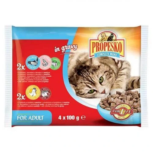 PROPESKO kapsičky pre mačky losos, kreveta, kura, hovädzie 4 x 100 g1,90 €/ ks