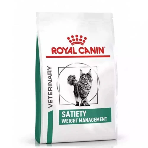Royal Canin Vet. Cat produktový rad Satiety je špeciálna veterinárna diéta určená na zníženie a udržanie hmotnosti pre dospelé mačky. Nadbytočný príjem potravy a málo pohybu vedie u domácich mačiek k problémom s hmotnosťou. Jedinečne vyvážená veterinárna diéta s nízkou energetickou hodnotou napomôže znížiť nežiadúcu nadváhu či obezitu a udržať excelentnú kondíciu mačky. Diéta je vhodná aj pre obézne mačky s cukrovkou 2. typu.