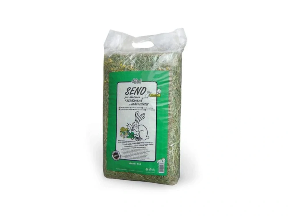 Voňavé a chutné seno pre králiky a hlodavce. Jeho kvalitu spoznáte už podľa farby a štruktúry. Je s prídavkom harmančeka a púpavy, vďaka ktorým králikom aj hlodavcom veľmi chutí.