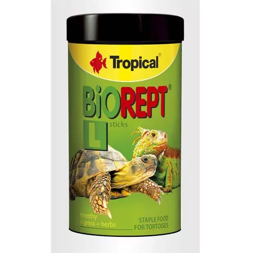 plnohodnotné, mnohozložkové krmivo vo forme tyčiniek určené pre denné kŕmenie suchozemských korytnačiek chovaných v teráriách. Krmivo je všetkými korytnačkami dobre prijímané, ľahko stráviteľné a rýchlo si ho osvoja. BIOREPT L obsahuje optimálne zbilancované zloženie základných a doplnkových výživných zložiek, dodaných za účelom zabezpečenia kŕmnych potrieb suchozemských korytnačiek. KŔMENIE: 1-2 krát denne. Nespotrebované zvyšky jedla odstrániť z podávača.