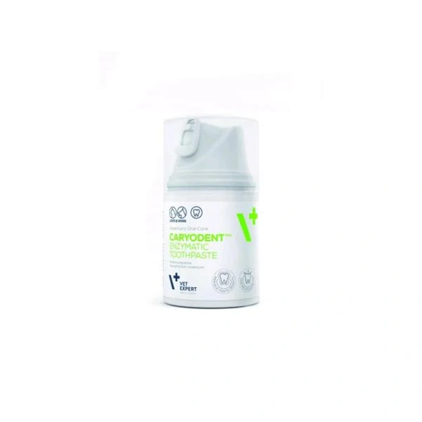 VetExpert Caryodent je enzymatická zubná pasta vo forme gelu určená na každodennú starostlivosť o ústnu dutinu psov a mačiek. Je vhodná aj pre mladé zvieratá.
