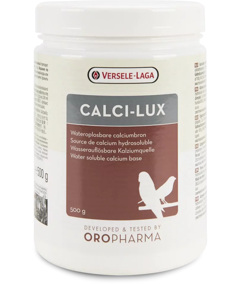 Oropharma Calci-Lux is je vysokokvalitný, vo vode rozpustný zdroj vápnika. Doplnok výživy sa podáva pre správnu tvorbu škrupiny vajíčka, správny vývin kostry u mláďat, v období párenia ako prevencia zadržania znášky a v prípadoch nedostatku vápnika alebo tetánie. Vápnik je esenciálny prvok v organizme vtákov. Okrem iného je potrebný pre správne fungovanie nervového systému. Nedostatok vápnika u vtákov pravidelne vyústi do zdravotných problémov. Pokiaľ sa vtákom nepodáva dostatok vápnika, spôsobí to odvápnenie kostry a deformáciu kostí. U samice má nedostatok vápnika v chovnej sezóne za následok nesprávnu tvorbu škrupiny vajíčka a dokonca zadržanie znášky. Preto sa počas chovnej sezóny odporúča podávať doplnok vápnika. Dostatočný prísun vápnika zabezpečí správnu tvorbu škrupiny vajíčka a vývin zdravej kostry.