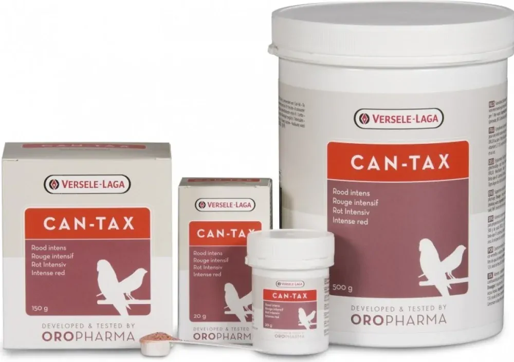 Oropharma Can-Tax je farbivo na báze kantaxantínu. Doplnkové krmivo vyfarbí červené kanáriky, zintenzívni červené sfarbenie u iného vtáctva a zabezpečí krásne pravidelné červené sfarbenie. Keďže perie pozostáva z mŕtvych buniek, ktoré už nie sú ovplyvňované metabolizmom, farbivo sa absorbuje pri tvorbe peria. V priemere sa operenie mení raz ročne, avšak nie naraz. Vypadávanie starého peria je stimulované rastom nového, je to postupný proces, aby si zviera udržalo plné operenie. Pridaním Can-Taxu do krmiva sa kantaxantín presunie do miesta rastu peria a zabezpečí jeho intenzívnejšie červené sfarbenie. Beta-apo-8-karotenal zabezpečuje vyššiu absorpciu kantaxantínu. Narastené perie si udrží svoje červené sfarbenie, až kým sa nevytvorí nové perie.
