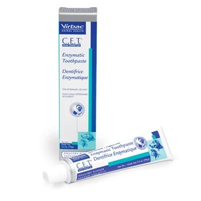 Zabezpečte svojmu psovi alebo mačke tú najlepšiu dentálnu starostlivosť na trhu. C.E.T. enzymatická zubná pasta od svetového lídra vo veterinárnej stomatológii, firmy Virbac, je zlatým štandardom v ústnej hygiene zvierat. Vďaka unikátnemu systému enzýmov poskytuje oveľa vyššiu úroveň ochrany než bežné kozmetické pasty.