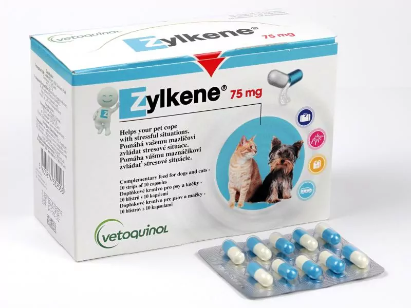 Obsahuje alfa-kasozepín, prírodný bioaktívny peptid odvodený z mlieka, navodzuje uvoľnenie a relaxáciu novorodencov pri saní materského mlieka. Zylkéne® je odporúčaný na použitie u psov a mačiek, ktorí reagujú príliš bojazlivo alebo úzkostlivo. Zmierňuje úzkosť, zlepšuje prispôsobivosť zvierat a podporuje obnovu ich prirodzeného správania.
